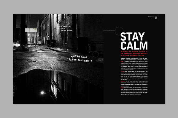 This project uses graphic design to express two meanings of the word "lost" (physically and emotionally) in the form of a magazine layout.