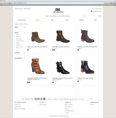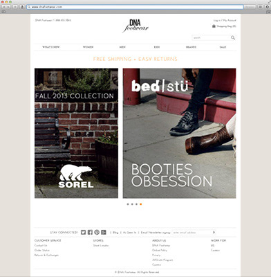 A visual redesign of the website dnafootwear.com (practice design).